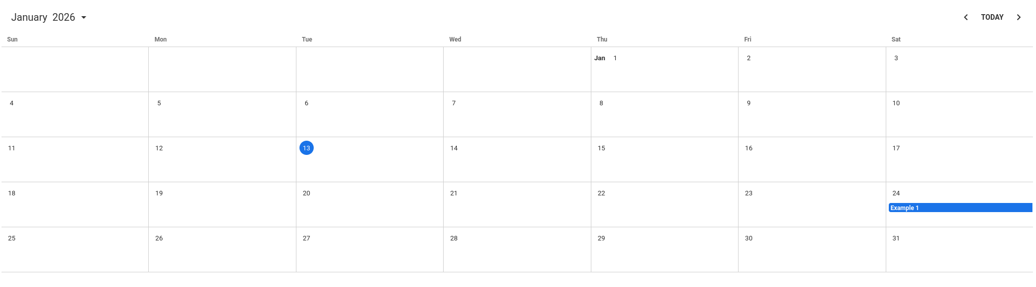 See how the event is not visible in the 25th of January (first day of the week and last day of the event).