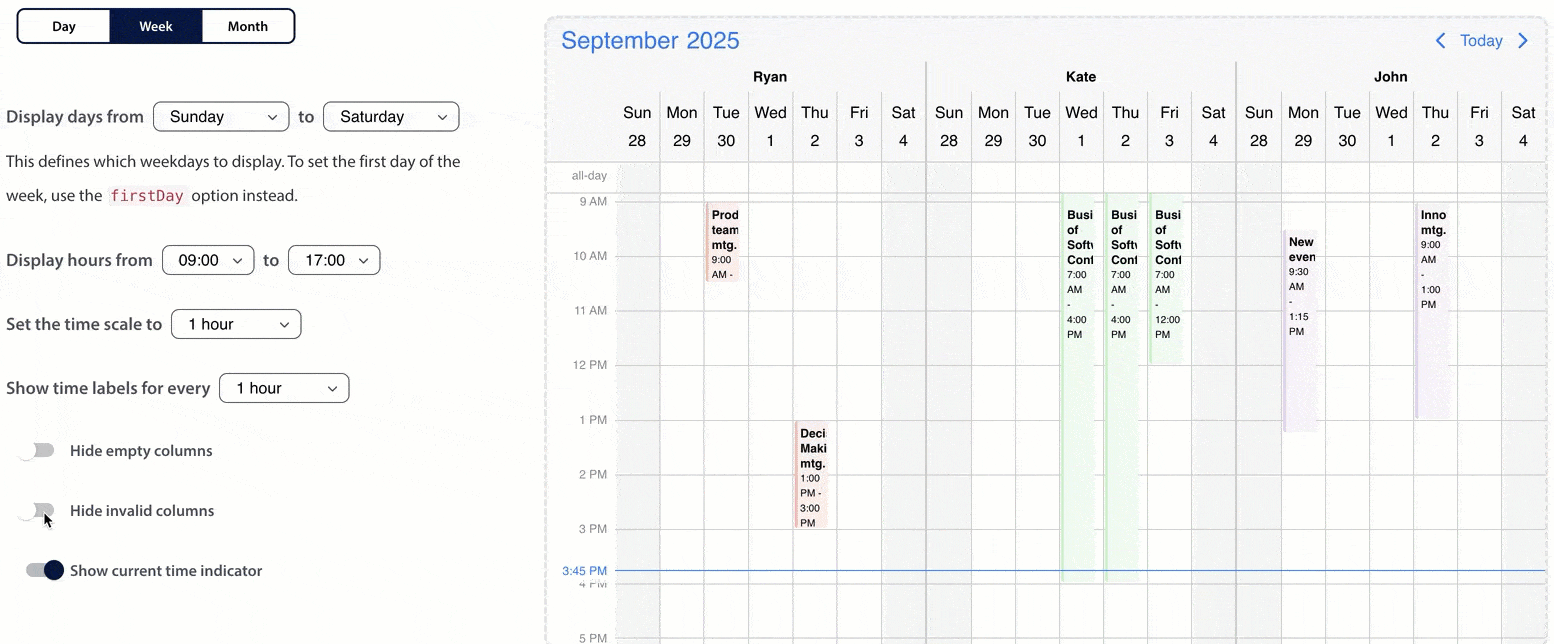 This level of customization helps teams tailor scheduling tools to their exact workflows – whether they need to surface KPIs, allow inline creation of new events, or highlight critical slots.